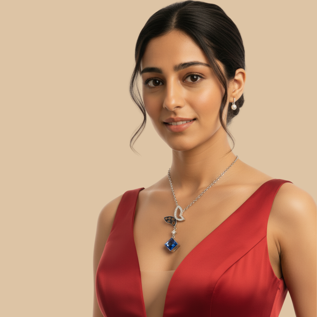 Inspired by the butterfly’s journey of transformation, this pendant embodies new beginnings and self-growth. The dual butterfly wings represent freedom and joy, while the bold blue CZ stone symbolizes strength, balance, and serenity.