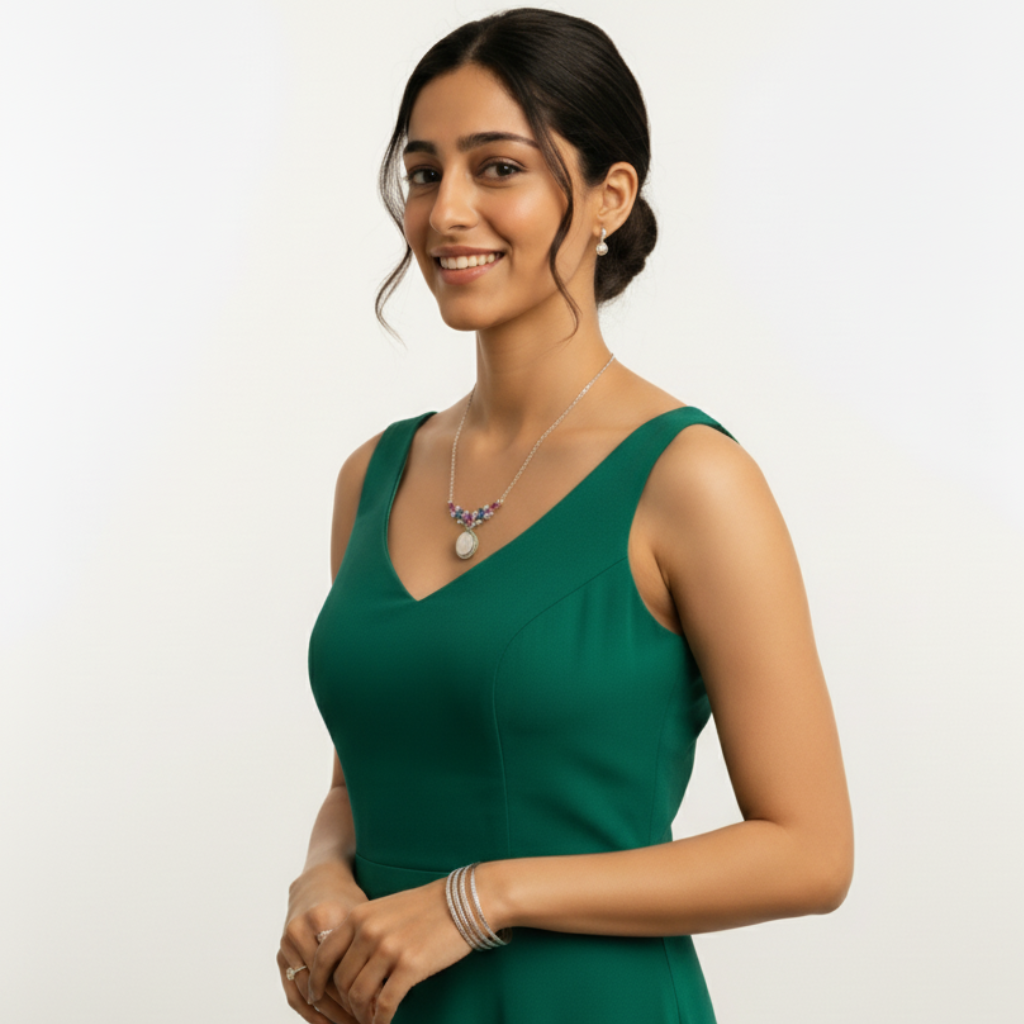 Crafted in 92.5 sterling silver, this necklace blends natural beauty with fine craftsmanship, making it perfect for both everyday sophistication and evening elegance.